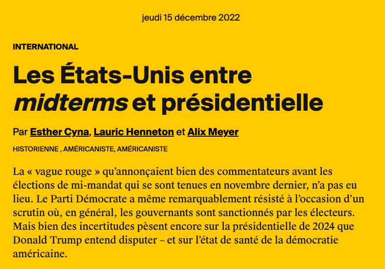 « Les États-Unis entre midterms et présidentielle », AOC Media, 15 décembre 2022